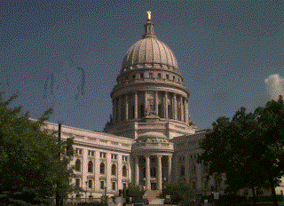 In the afternoon I was inspired by Wisconsin's capital building and its murals, promenaded up and down State Street a number of times, enjoyed reading on on the terrace of the university's student union, collected some water from the lake, and got my year's supply of cholesterol at Smokey's Club.